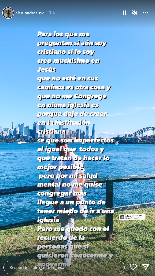 A través de sus stories en Instagram, Alexander Núñez le respondió a sus seguidores luego de que en 2017 hiciera público que se unió a una iglesia evangélica.