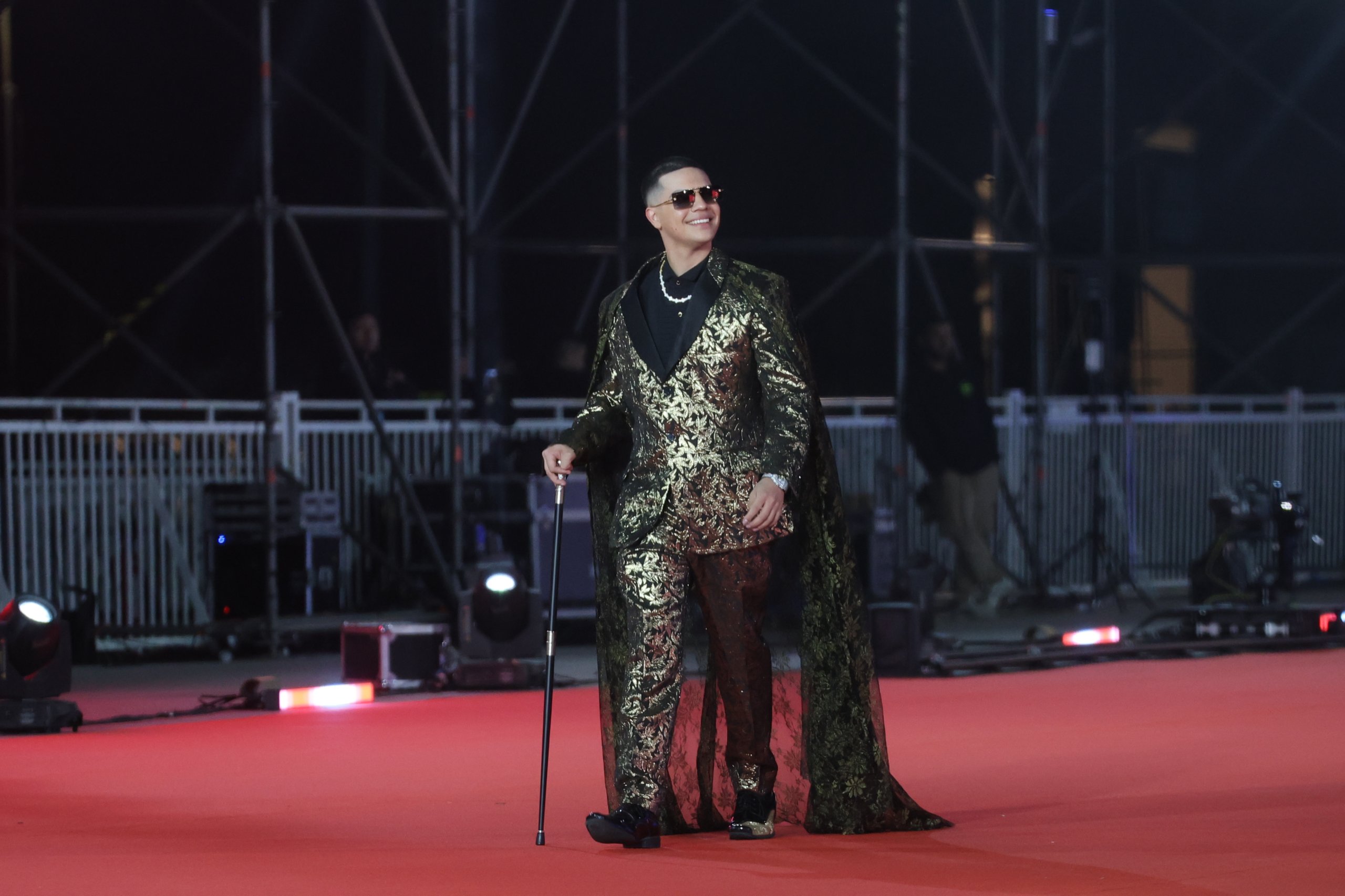 Otro que acaparó la atención fue Pablito Pesadilla, reconocido DJ y productor musical que lució un conjunto de dos piezas dorado con detalles en negro, acompañado de accesorios como una capa y bastón.