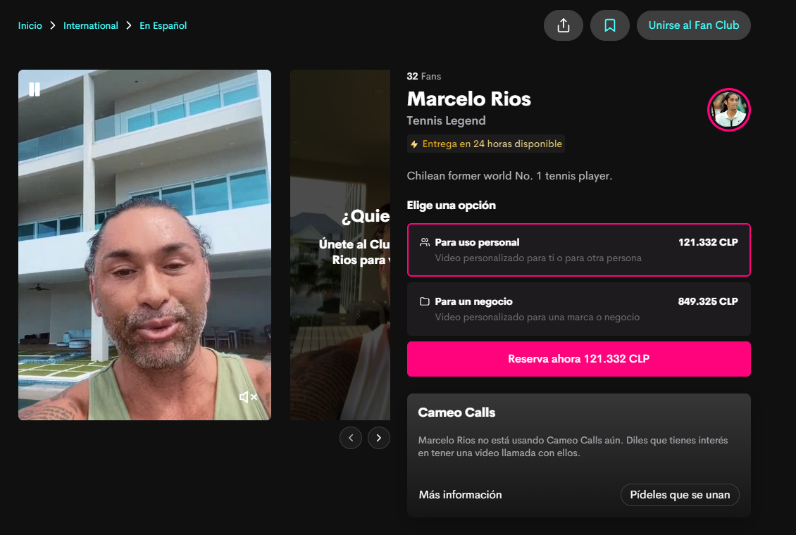 El ex tenista se sumó a la tendencia de algunos famosos chilenos y se unió a Cameo, la plataforma en la que se puede comprar saludos de distintos rostros.
