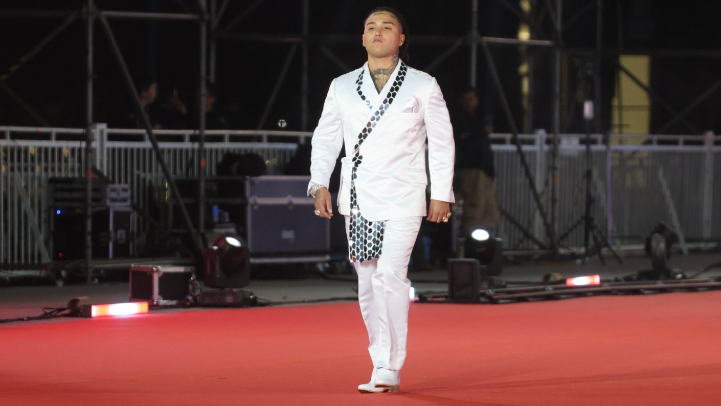 De punta en blanco y reluciente, el artista urbano nacional dejó la vara alta para los demás invitados a la Gala de Viña 2025.