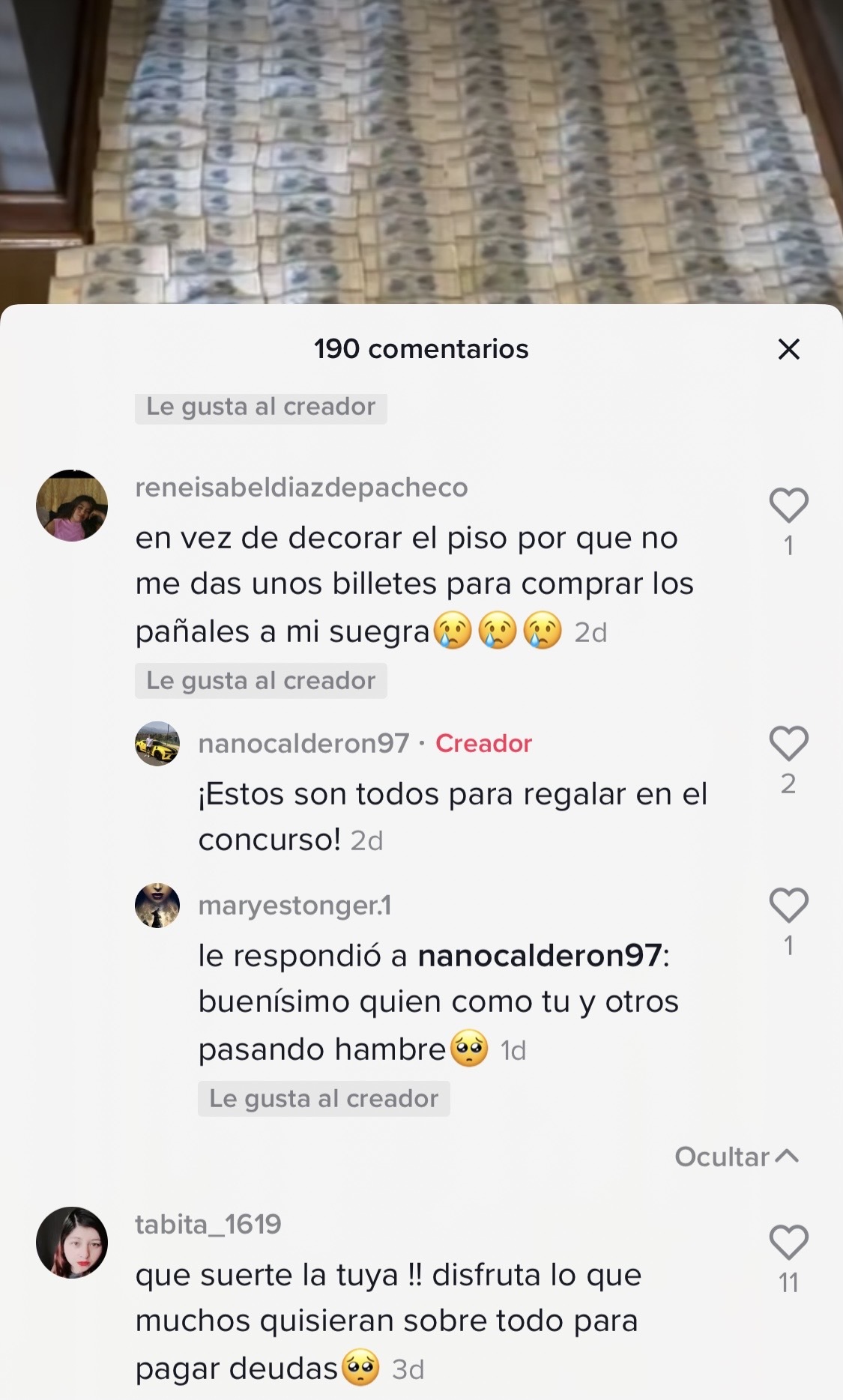Sin embargo, y ante los miles de comentarios de quienes le manifestaban que eso era mucho dinero y que lo ocuparían para solventar necesidades básicas, Nano aclaró que todo se trataría de una broma.