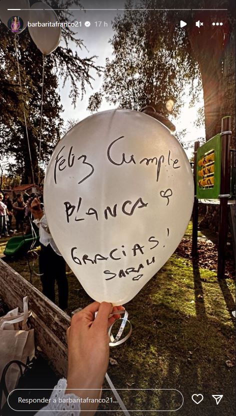Instagram @barbaritafranco21"Blanca, con tu luz aquí jugamos", es el lema que quedó escrito sobre el resbalín principal de la plaza en la que los asistentes lanzaron globos blancos hacia el cielo con distintos mensajes dirigidos hacia la pequeña fallecida en 2012.