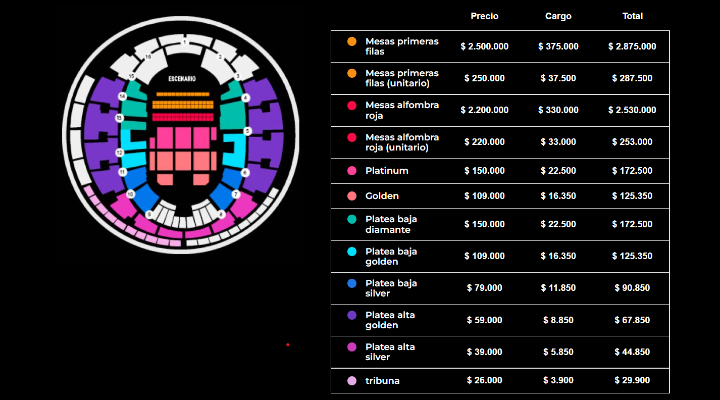 Christian Nodal se presentará el próximo 1 de julio en el Movistar Arena donde el concierto será reacondicionado para disfrutar de la fiesta del cantante al estilo mexicano.La estrella cantará sus hits más importantes cómo Me dejé llevar, que ya supera las cien millones de visitas en Youtube.Ahora bien, una de las cosas que más llama la atención de los fanáticos del artista, son los precios de las entradas que, si bien parten desde los $26.000, las más cercanas al cantante y escenario tienen un valor de $2.875.000 pesos.A diferencia de una entrada común, se conoce que el costoso boleto incluye una categoría de “mesas en primera fila”, sin embargo, desde PuntoTicket aún no aclaran qué es lo que significa precisamente.