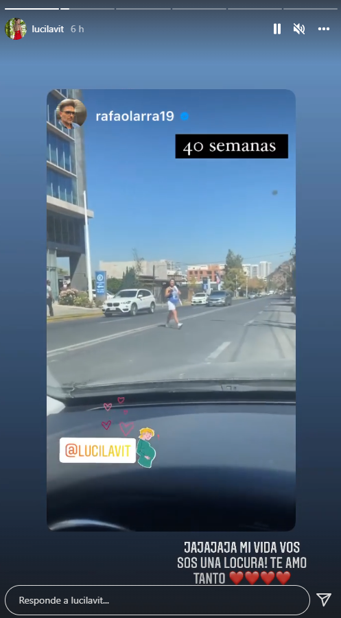 "40 semanitas y ella viene muy campante de entrenamiento, es una locura cómo la amo... te amo amor", se le puede escuchar al también comentarista deportivo en la historia compartida en su cuenta de Instagram, la cual posteriormente fue reposteada por la trasandina.