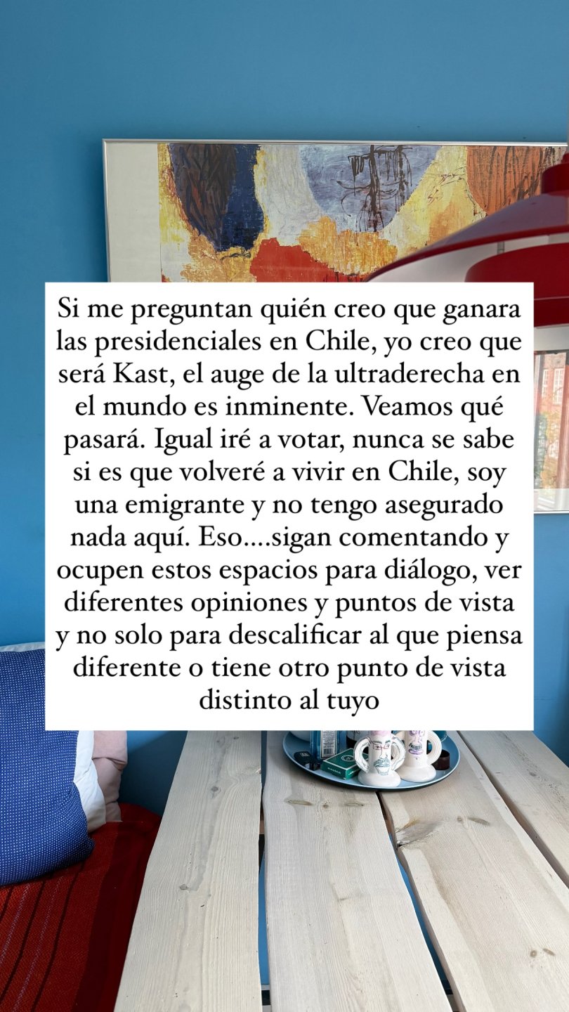 La influencer exYingo reveló por quién votará en las próximas elecciones presidenciales en Chile e hizo un análisis sobre el sistema político en nuestro país. "Sigo siendo chilena y tengo derecho a votar", reflexionó.