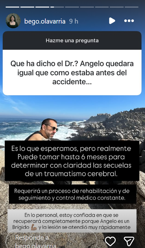 Durante el jueves 1 de enero, Begoña informó de la positiva evolución de Angelo Pierattini. "Seguimos esperando su despertar, pero hoy gran avance: Respiración autónoma, ya no con ventilador mecánico", señaló.
