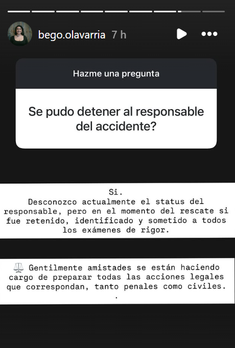 "¿Se pudo detener al responsable del accidente?", preguntó otro usuario, y la esposa del artista confirmó que "sí", aunque desconoció el estado actual del conductor que colisionó a Pierattini.
