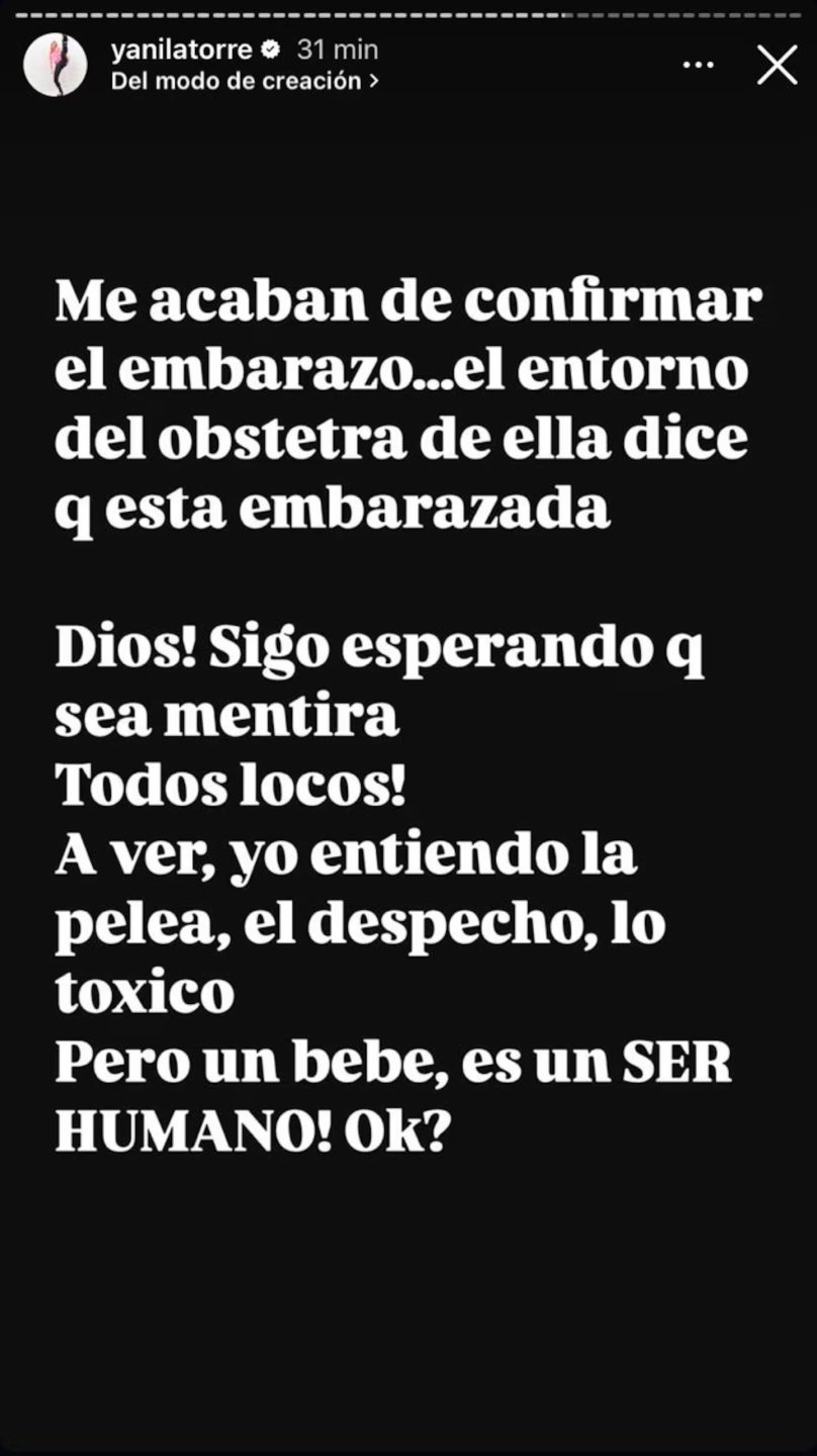 Más tarde, la periodista aseguró lo siguiente a través de Instagram: “Me acaban de confirmar el embarazo... el entorno del obstetra de ella dice que está embarazada”.