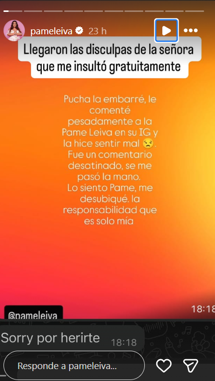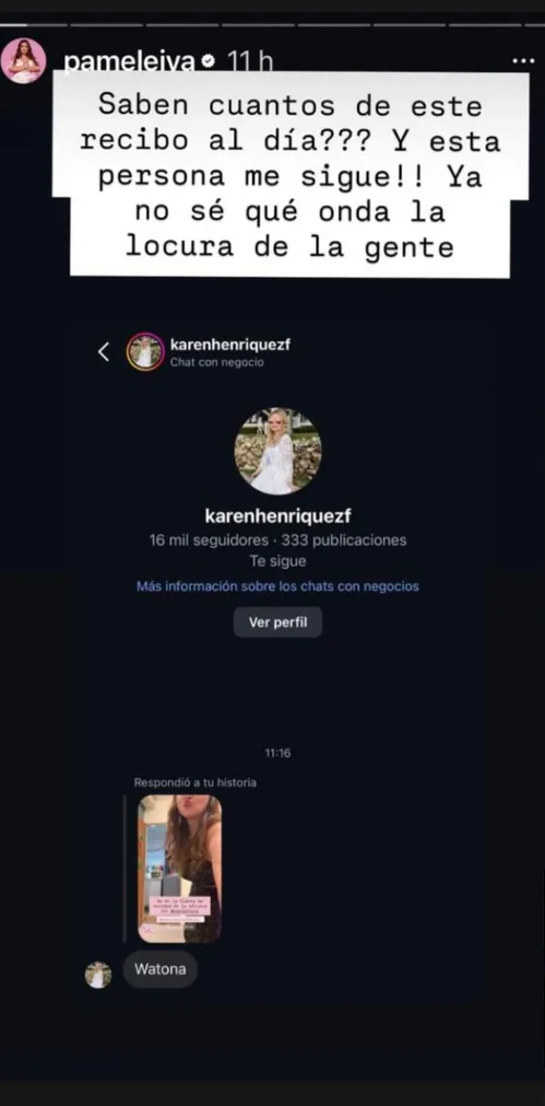 Pamela Leiva, muy activa en redes sociales, expuso una situación este fin de semana cuando respondió un negativo comentario de una usuaria que incluso la seguía.