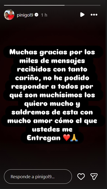 Finalmente, Pinilla concluyó: "No he podido responder a todos porque son muchísimos. Los quiero mucho y saldremos de esta con mucho amor, como el que ustedes me entregan".