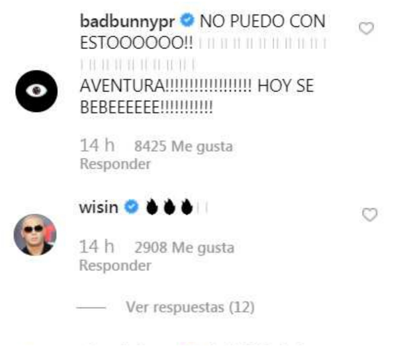 Su anuncio llamó la atención de otros grandes artistas urbanos como Wisin y Bad Bunny. Este último escribió, “no puedo con esto!! (…) Aventura!! Hoy se bebe”.