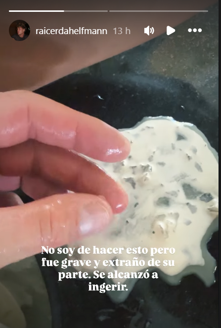 A través de su cuenta de Instagram, Raimundo escribió: "No soy de hacer esto, pero fue grave y extraño de su parte. Se alcanzó a ingerir".