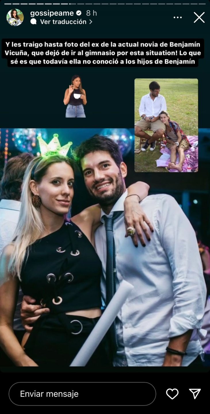 De acuerdo a lo señalado por la cuenta, Benjamín Vicuña estaría saliendo con una mujer de 40 años identificada como Anita Espasandin, quien era su compañera de gimnasio y se habría separado de su marido por el actor.