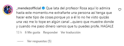 "Decirle a DJ Méndez que se acuerde de mí, que me debe 70 palos (millones)", expuso el humorista. Palabras que claramente no dejaron indiferente al increpado.