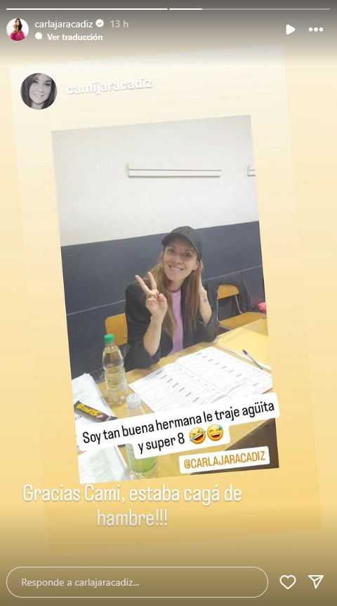 "Siendo las 18:20 horas, terminamos nuestro trabajo del día de hoy. Somos vocales de mesa, aquí estoy con mis dos compañeros", comenzó la influencer en una storie.
