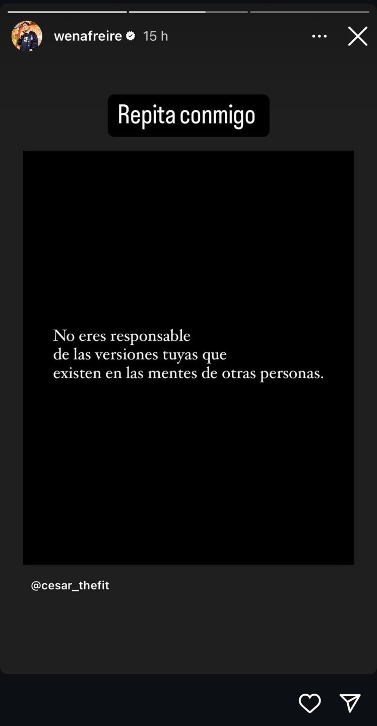 "No eres responsable de las versiones tuyas que existen en las mentes de otras personas", se puede leer en la storie que compartió Freire la noche de este martes.