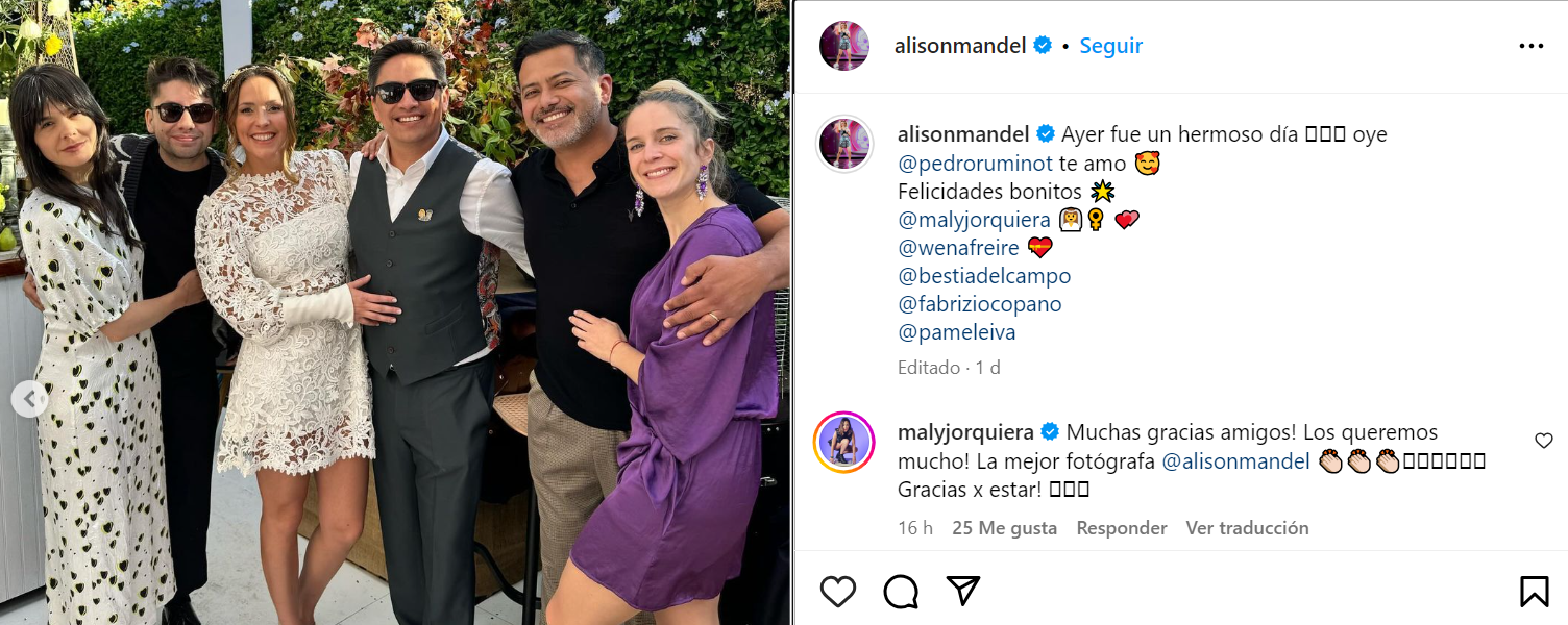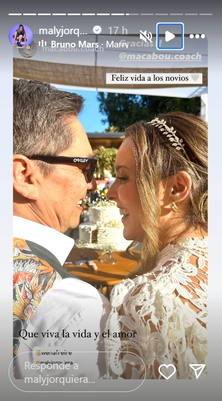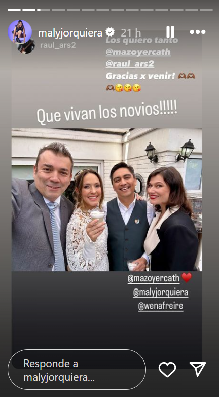 Por su parte, Carla Jara escribió un tierno mensaje en la publicación: "Ayer (sábado) se casó mi amiga hermosa Maly Jorquiera y Sergio Freire, fue todo tan lindo y romántico. Que viva el amor, que vivan los novios. Los adoro amiguitos, que sean siempre, siempre muy felices junto a Luquitas".