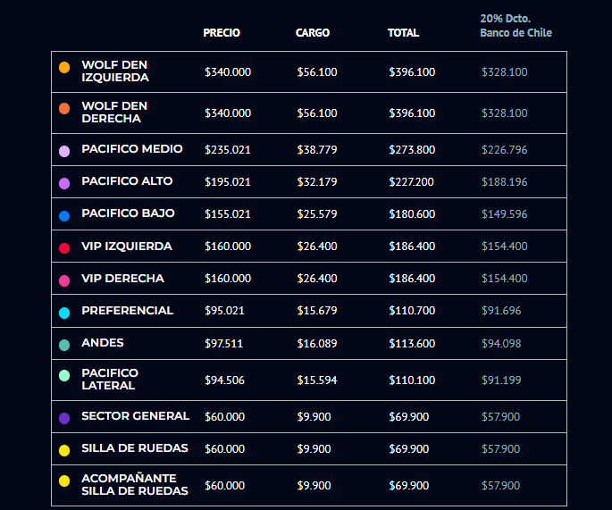 Los tickets se pueden adquirir a través de la plataforma de Punto Ticket y son para quienes sean clientes del Banco de Chile.