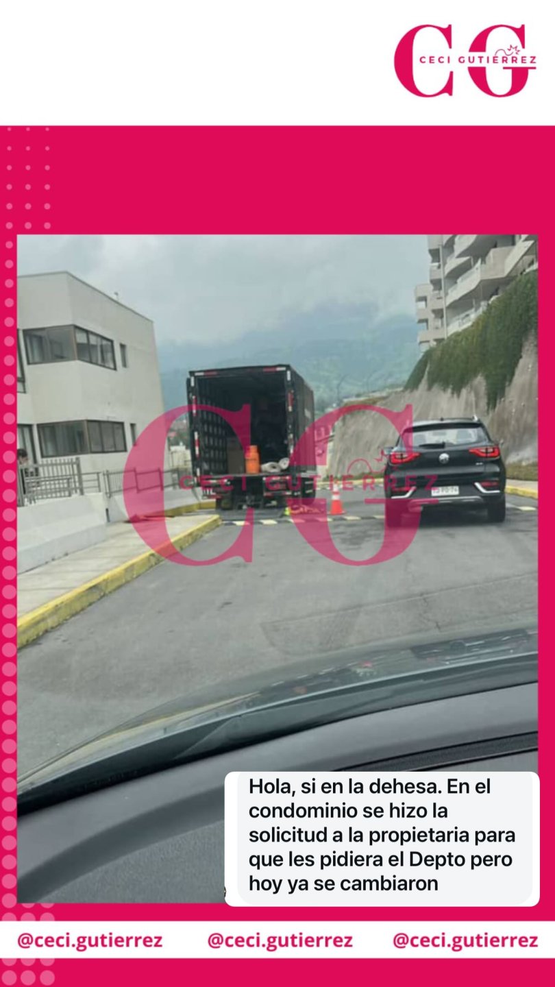 A continuación, la periodista publicó una fotografía del camión de mudanza y una captura de pantalla de una conversación donde otra de sus fuentes indica: "En el condominio se hizo la solicitud a la propietaria para que les pidiera el departamento, pero hoy se cambiaron".