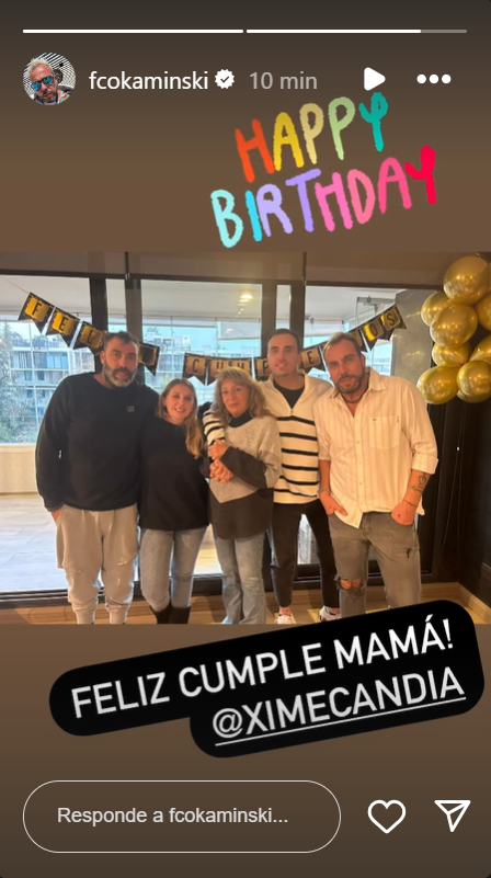 Este lunes Francisco Kamisnki publicó a través de sus redes sociales la celebración de su cumpleaños de su madre, Ximena Candia.