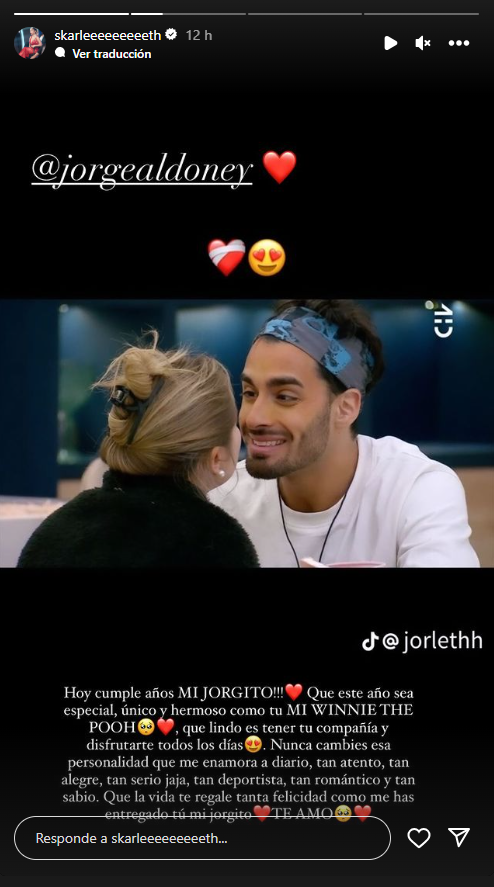 Dentro de las publicaciones por el cumpleaños del modelo, fue él mismo quien compartió un tierno video junto a Skarleth, donde a ella se le puede ver