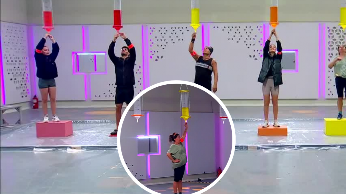 Los participantes tuvieron que resistir en una estructura con cilindros colgantes y evitar que el liquido que estaba en los contenedores cayera. Sin embargo, fueron cayendo uno a uno con excepción de la chilota.