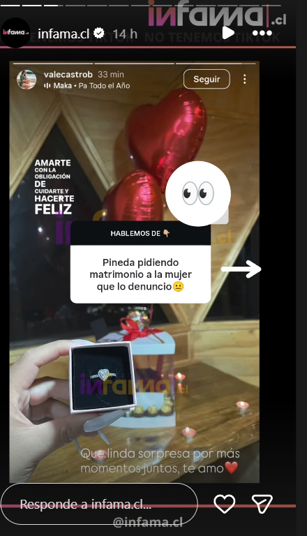 "Qué linda sorpresa. Por más momentos juntos. Te amo", escribió Castro, quien a los minutos borró la publicación; sin embargo, Pineda utilizó su cuenta de Instagram y compartió una fotografía de ambos.