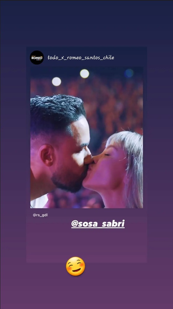 Graban beso de Romeo Santos a Sabrina Sosa en el primero de sus 9 conciertos en Chile.Graban beso de Romeo Santos a Sabrina Sosa en el primero de sus 9 conciertos en Chile.