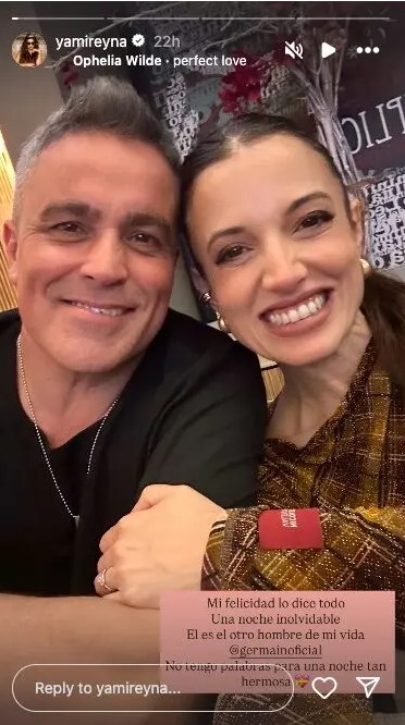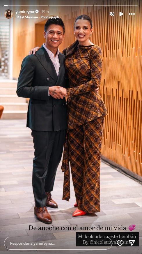 Reyna compartió otro registro de esa misma velada junto Américo, esta vez ocultado el anillo, y junto al mensaje “de anoche con el amor de mi vida”.