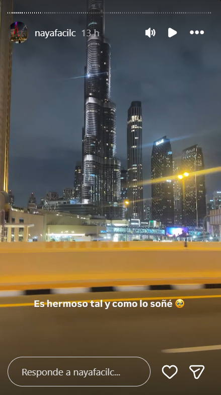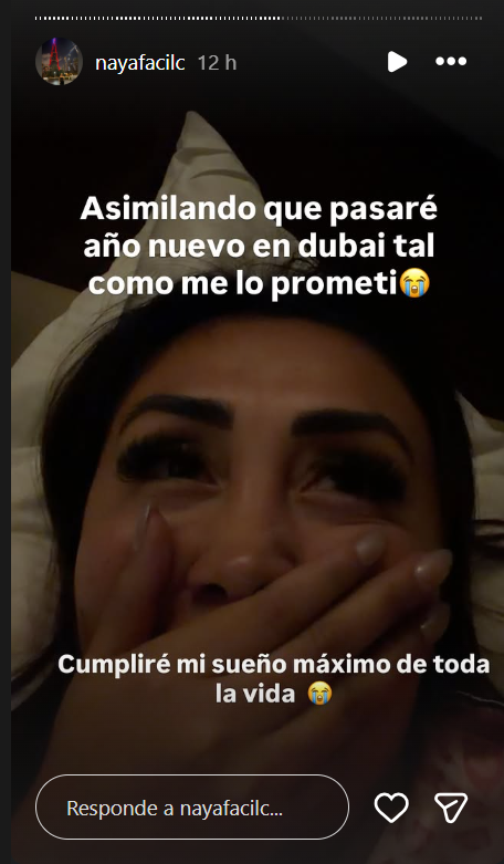 Finalmente, Naya concluyó: "Asimilando que pasaré el Año Nuevo en Dubai, tal como me lo prometí. Cumpliré mi sueño máximo de toda la vida".