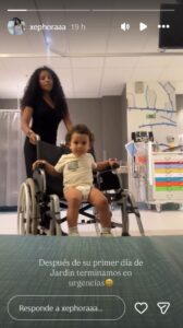 A través de su cuenta de Instagram, Xephora escribió: “Después de su primer día de jardín (infantil) terminamos en urgencias”.