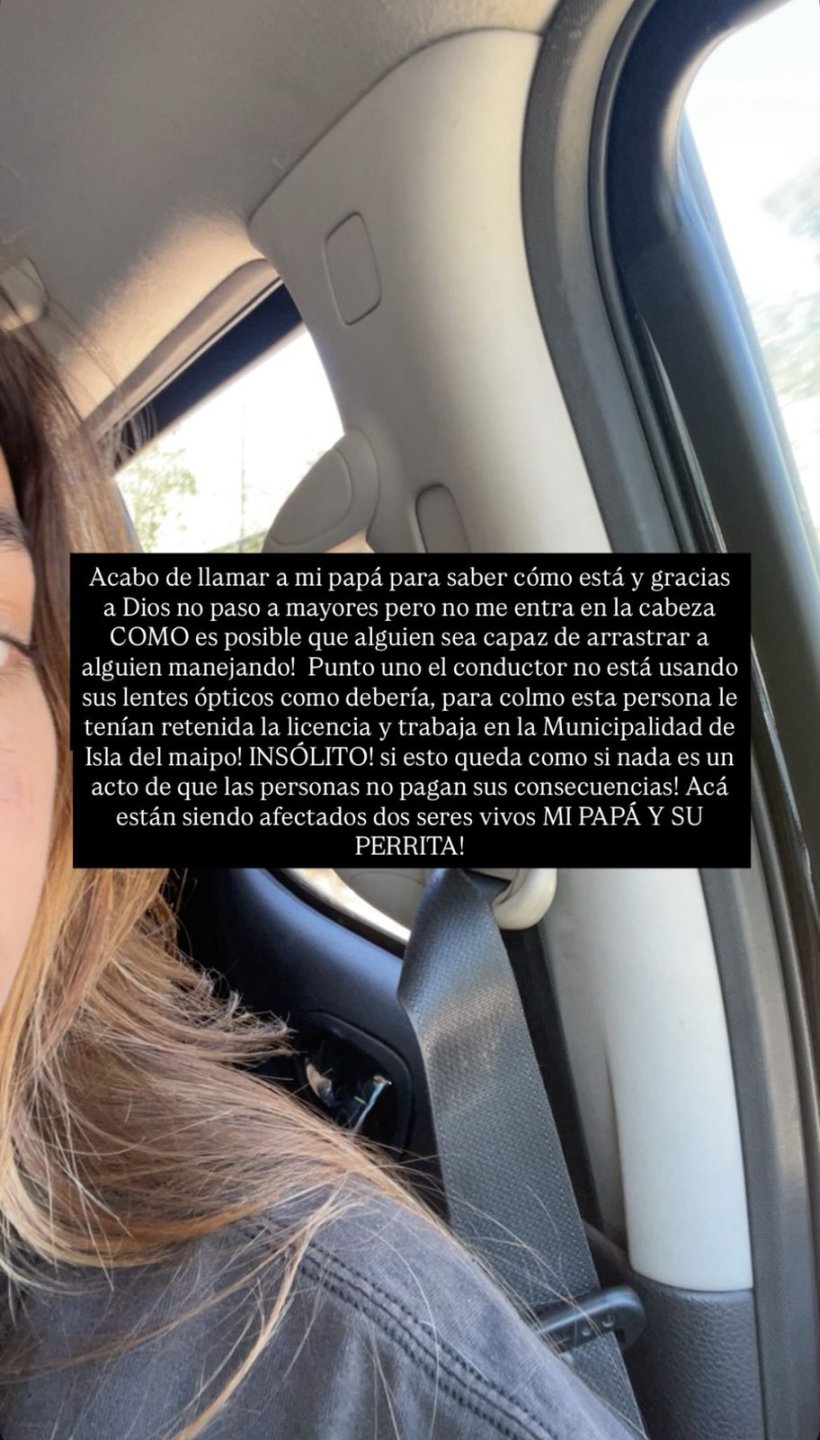 El registro muestra a la persona que manejaba el vehículo, su padre, su perrita y un funcionario municipal, mientras que María Beatríz Fuentes, su pareja, explica en detalle lo sucedido.