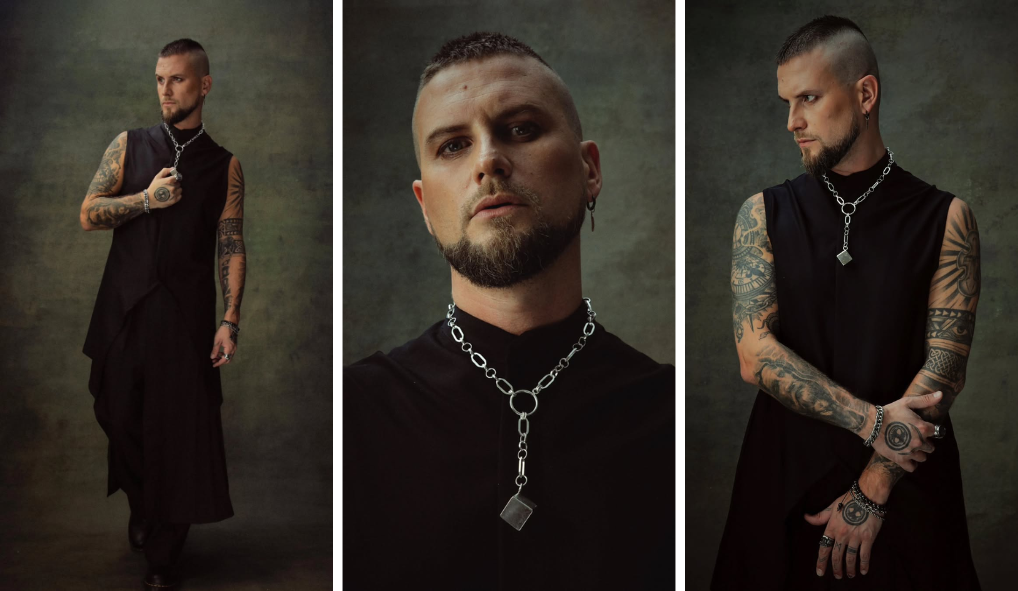 El comunicador desfiló con un conjunto completamente negro, compuesto por una túnica larga sin mangas de corte recto y asimétrico, que caía por debajo de la cadera, combinada con pantalones amplios del mismo tono.