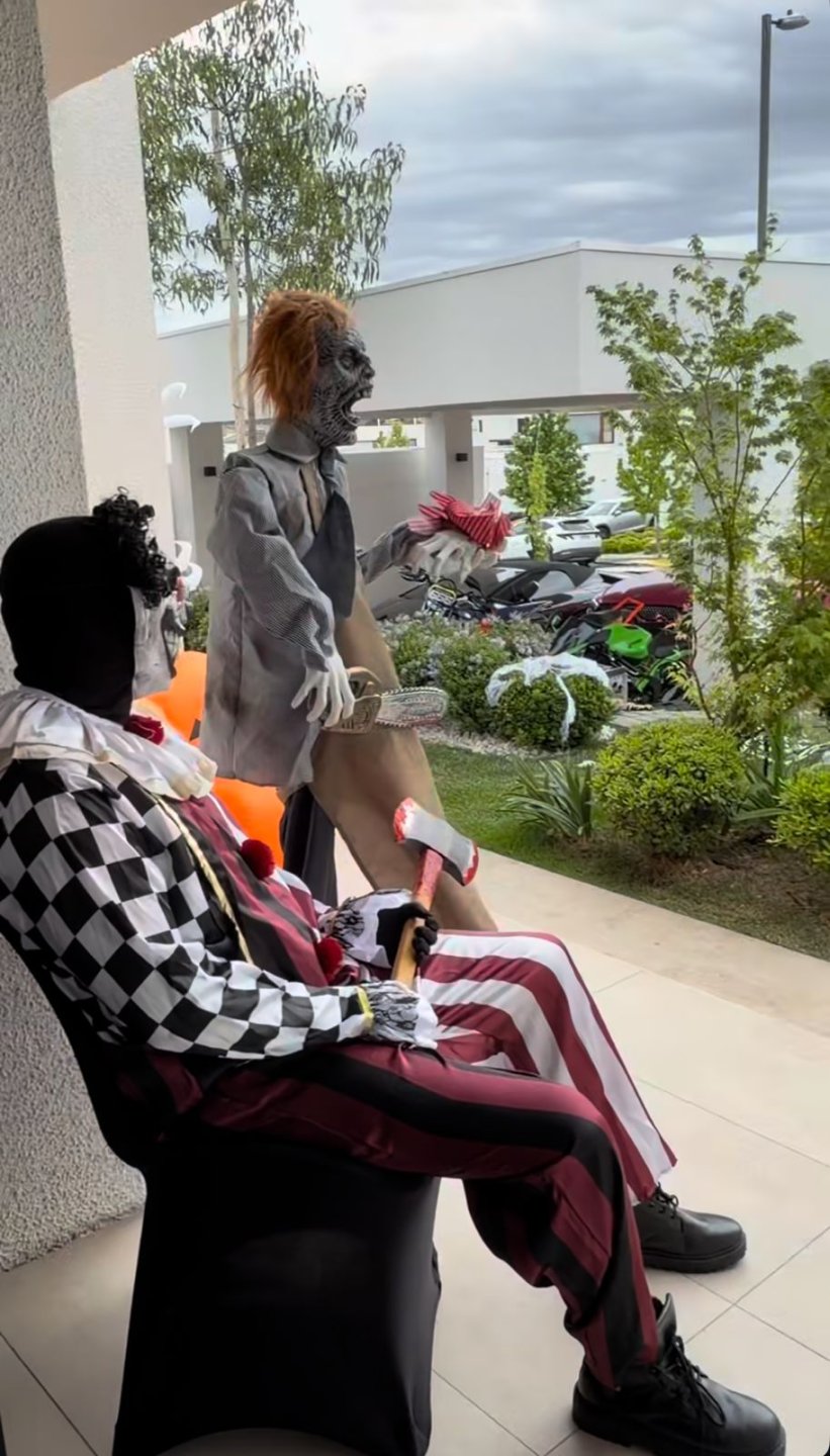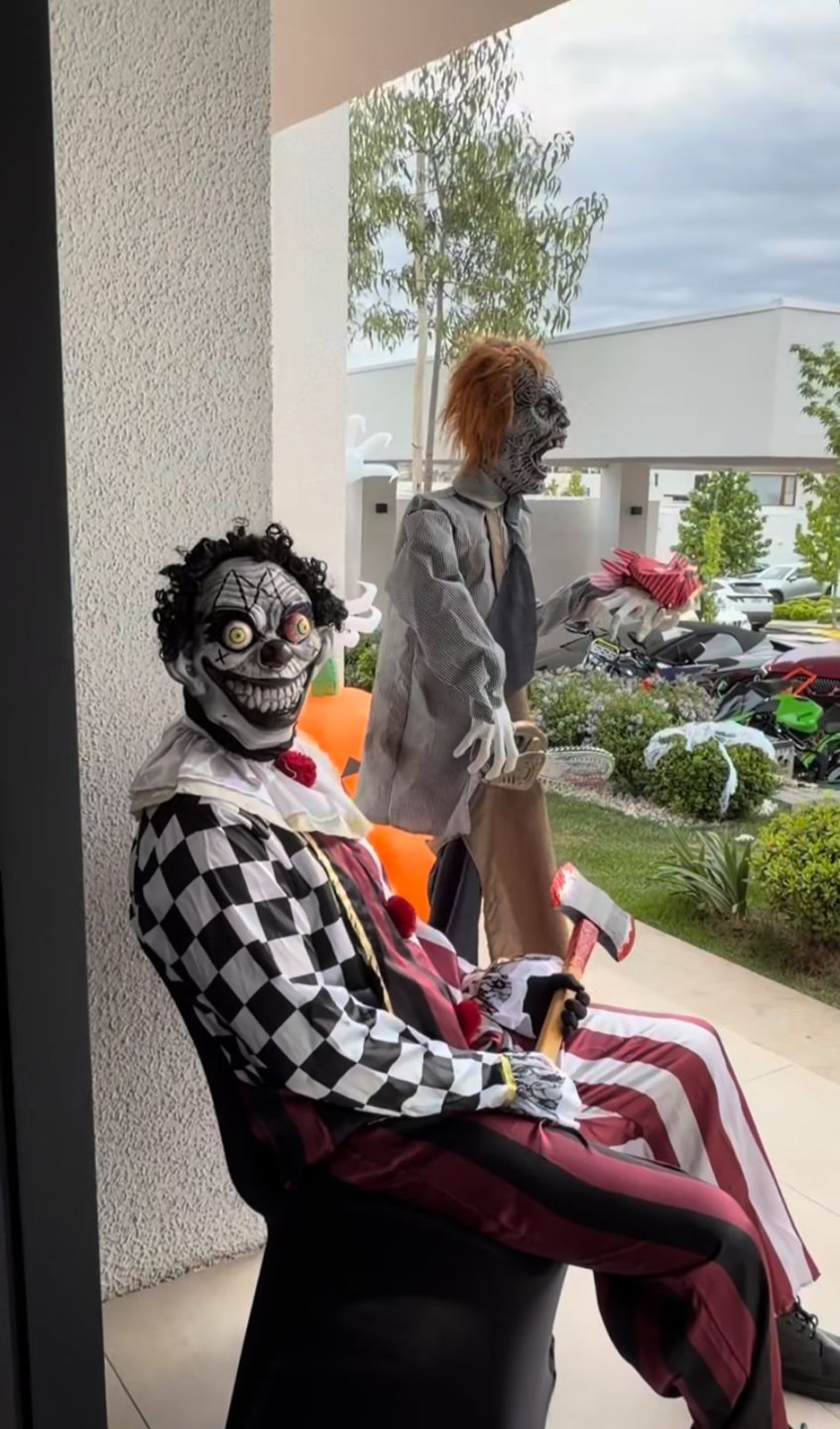 El hijo de Raquel Argandoña se camufló con un disfraz de payaso y se sentó durante tres horas en la puerta de su casa para asustar a quienes se acercaban, lo que atrajo toda la atención de los niños, quienes llegaron en masa al lugar.