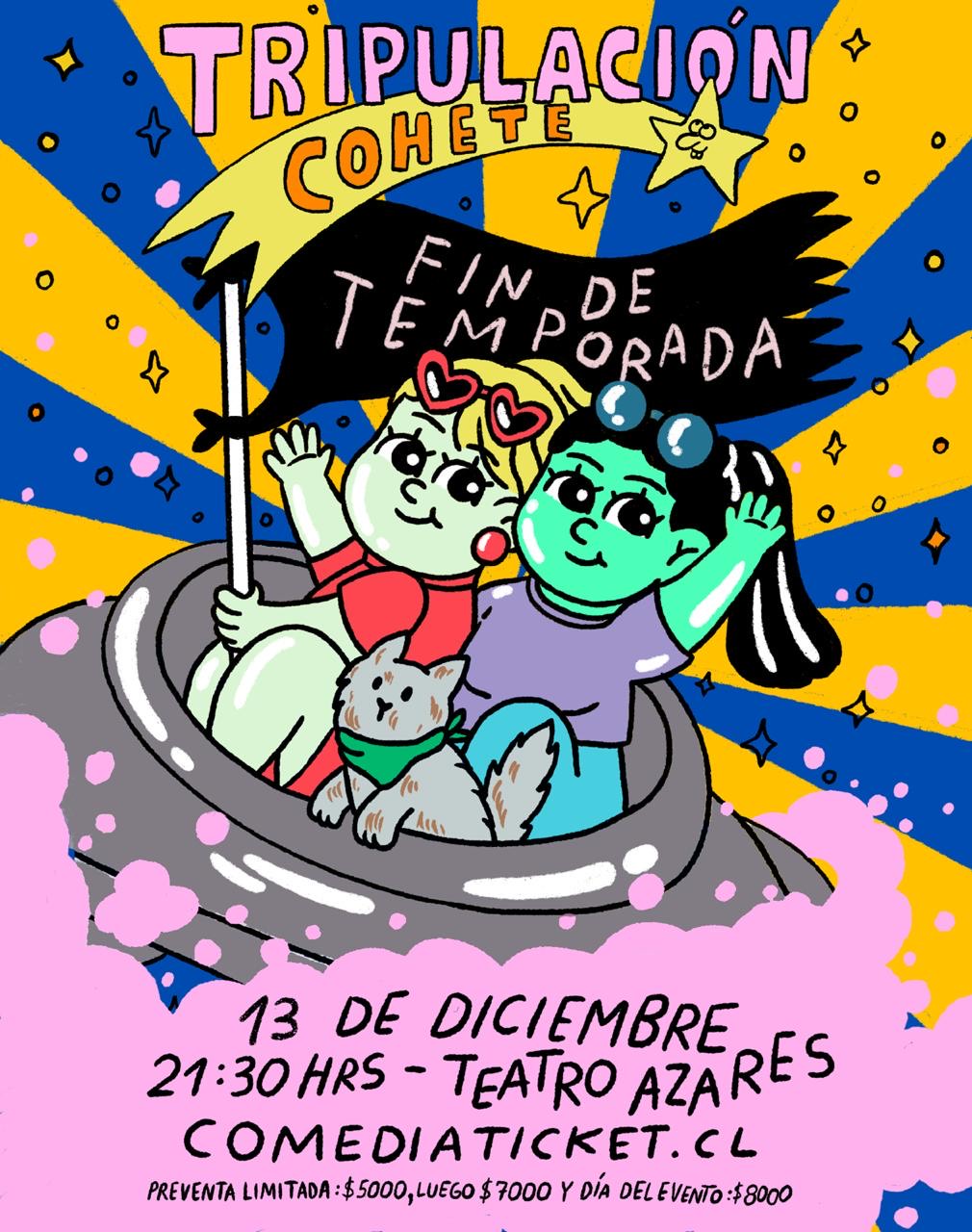 Tripulación Cohete se presentará el próximo viernes 13 de diciembre, a las 21:30 horas, en Teatro Azares (Vicuña Mackenna 602, Providencia). Las entradas están disponibles a través de Comediaticket.cl