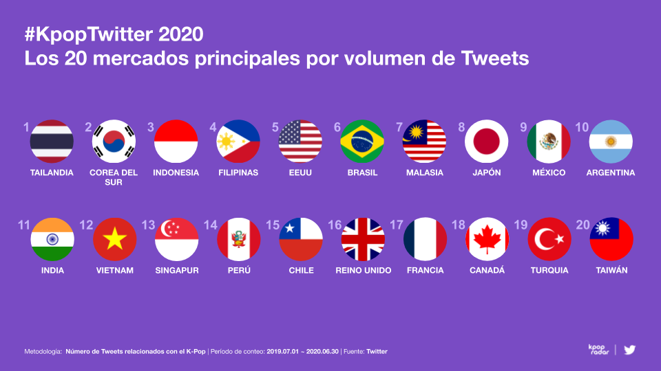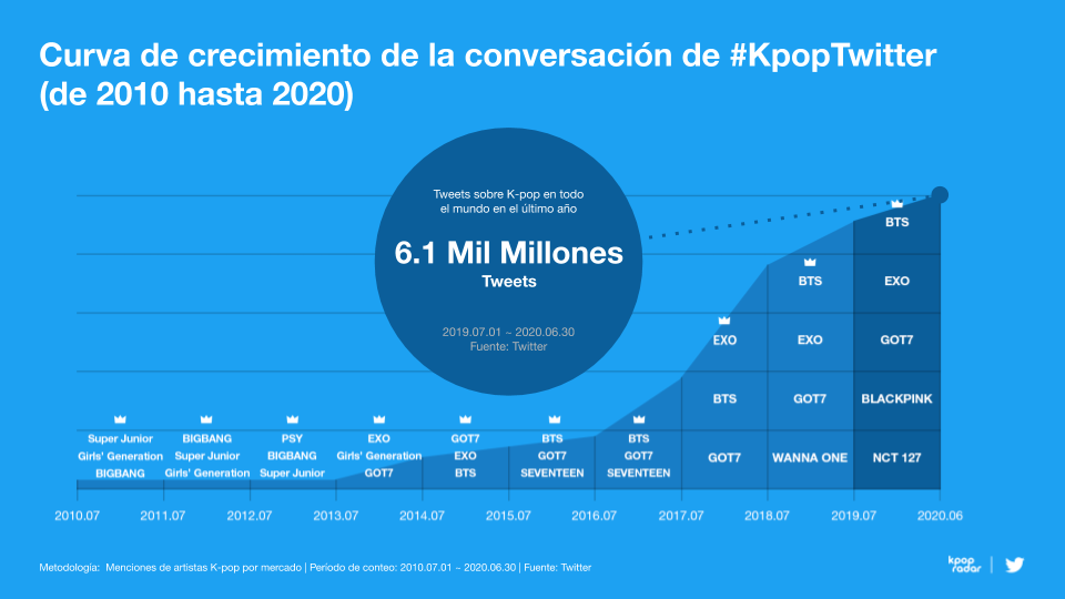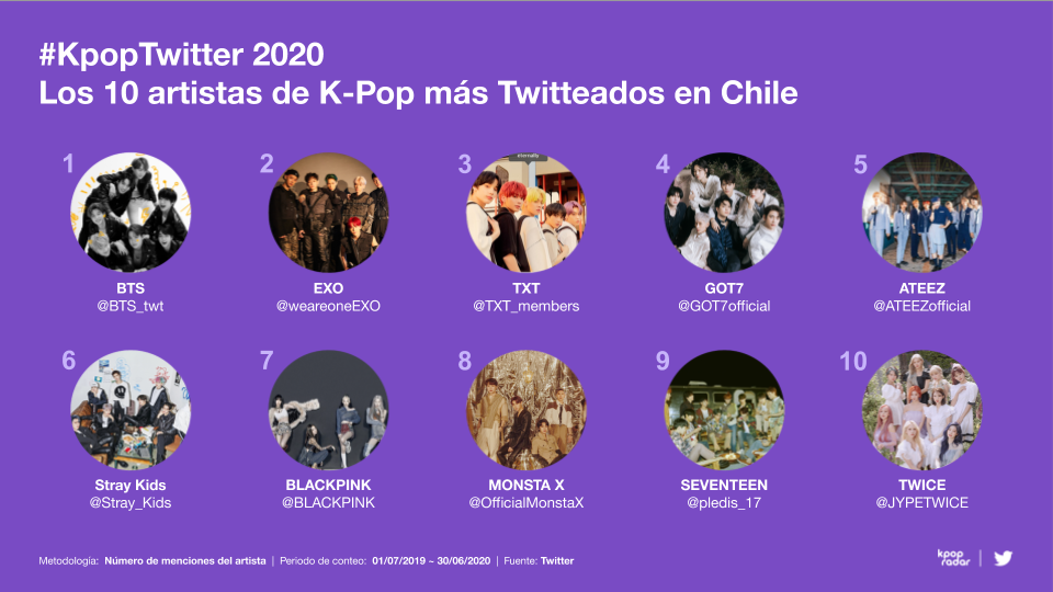 También han contribuido a los más de seis mil millones de comentarios sobre K-Pop que se han publicado en esa red en el último año, según reveló un estudio dado a conocer por Twitter en asociación con K-Pop Radar. Según este análisis, es precisamente BTS la banda de K-Pop más mencionada en esta plataforma, tanto en Chile como en el resto del mundo.