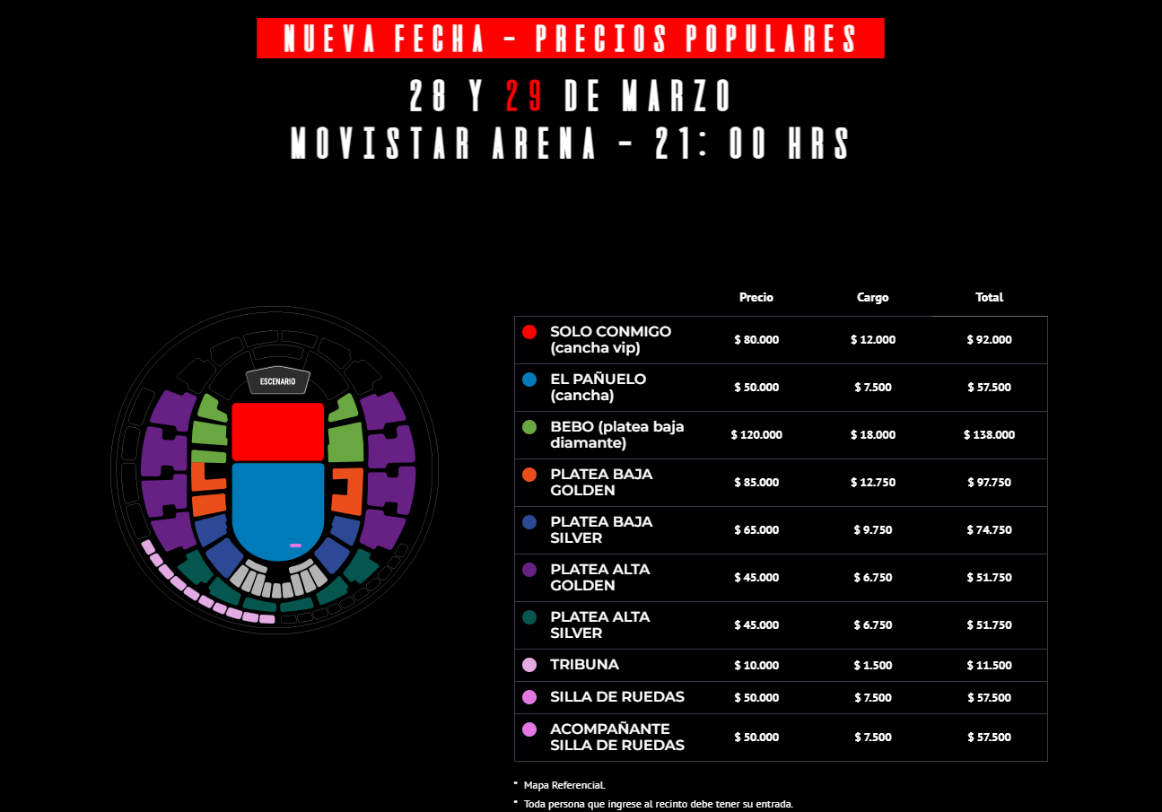 Para comprar entradas, lo debes hacer a través del sistema de Punto Ticket.
