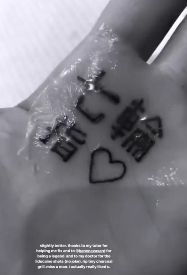 “Un poco mejor. Gracias a mi tutor por ayudarme a arreglarlo y a Kane Navasard por convertirse en una leyenda. Y a mi doctor por la inyección de lidocaína (anestésico local)”, compartió junto a una foto de su nuevo tatuaje en el que agregó el kanji y un corazón.