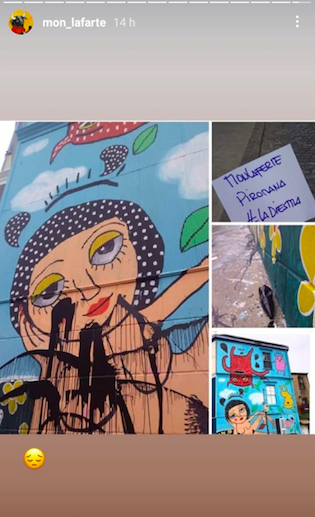 “Sabía que esto iba a pasar”, escribió la cantante en sus historias de Instagram, donde junto a un emoji de carita triste, adjuntó la imagen del mural vandalizado.