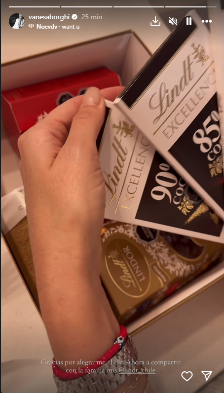 "Gracias por alegrarme el día", partió diciendo Vanesa en un video de Instagram, mientras mostraba una caja con chocolates que le enviaron de regalo.