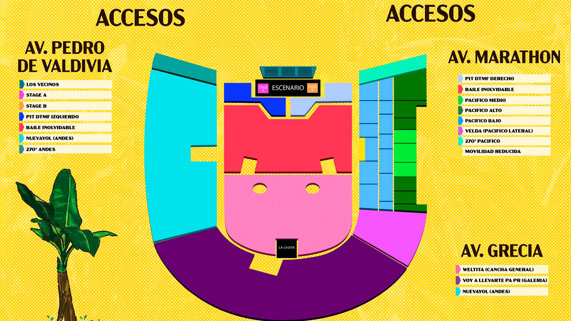 Los accesos estarán divididos principalmente por Avenida Pedro de Valdivia, Avenida Marathon y Avenida Grecia, dependiendo de la ubicación de tu ticket.