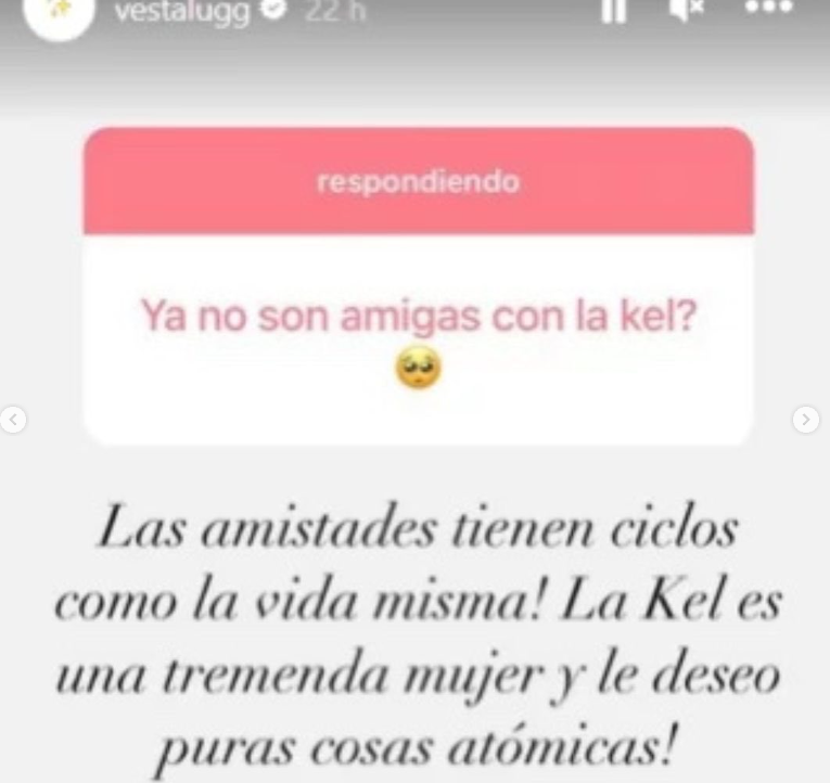 "¿Ya no son amigas con la Kel?", preguntó una de las seguidoras de la también actriz, ante lo que respondió que "las amistades tienen ciclos igual que la vida".
