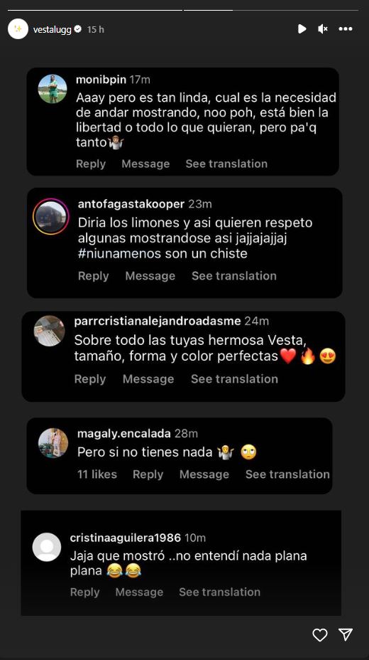 destacó también el comentario de su propio pololo, quien comentó "son geniales", y de otras seguidoras que destacaron su osadía, también tuvo que leer ataques a su cuerpo y a su gesto.