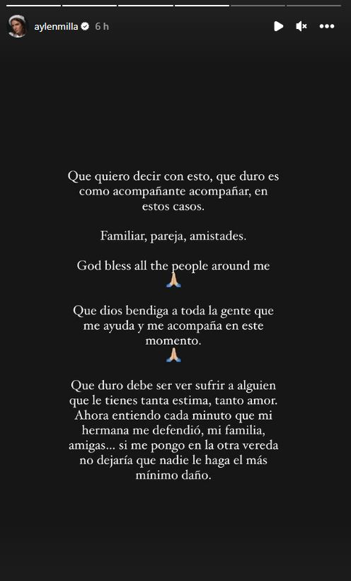 "Que dios bendiga a toda la gente que me ayuda y me acompaña en este momento", expresó.