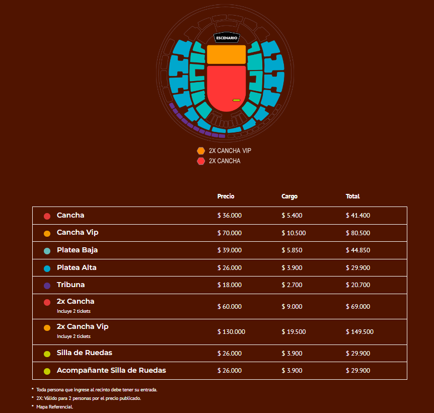 Los tickets están disponibles en Punto Ticket y los precios van desde los $26 mil hasta los $70 mil, sin cargo por servicio.
