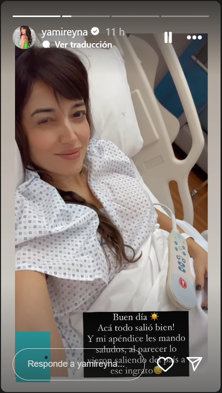 Yamila Reyna debió ser internada de urgencia por una apendicitis. Al menos así lo informó la trasandina a través de su Instagram.