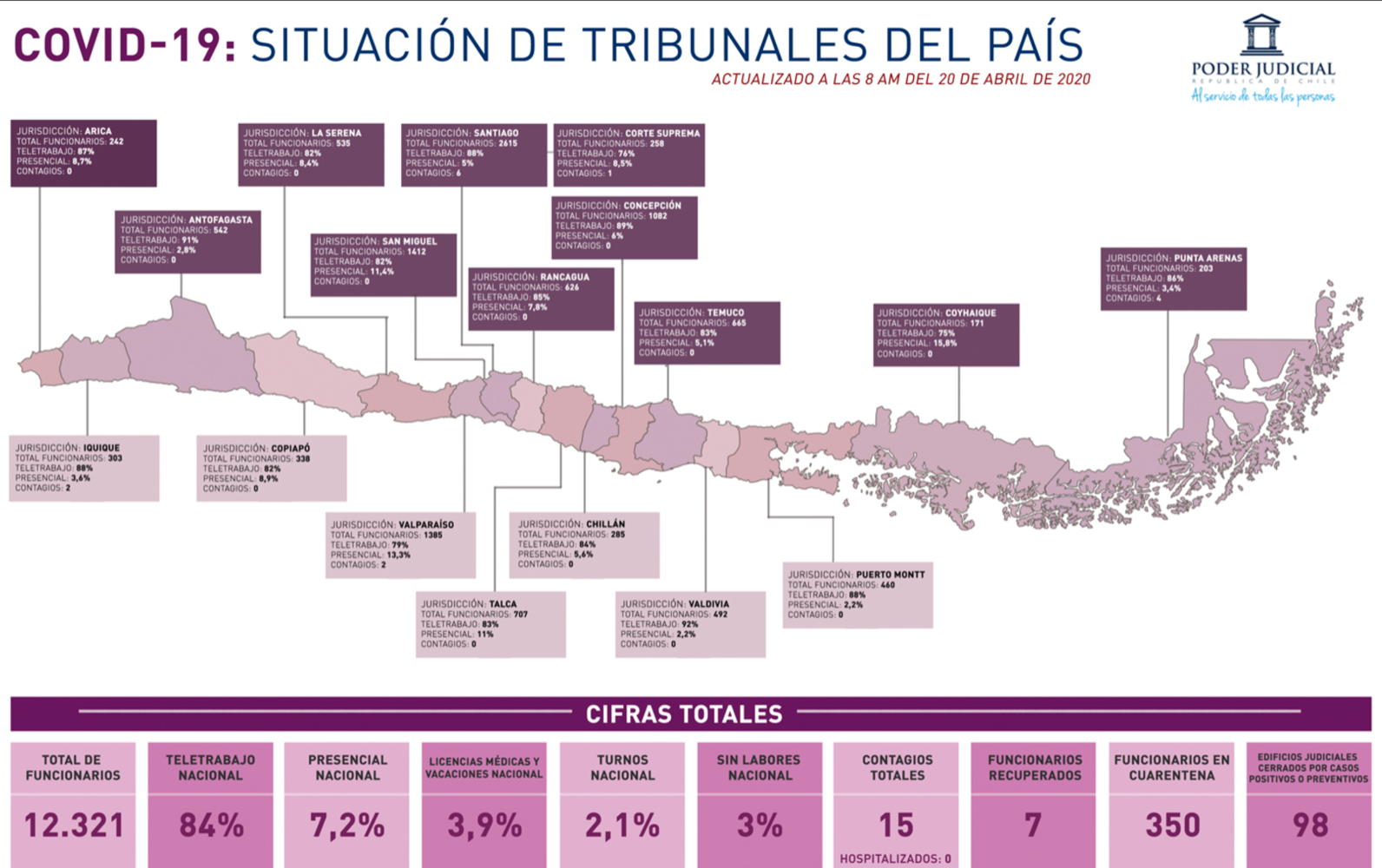 Finalmente, presentaron una infografía con la situación de los tribunales en todo Chile.