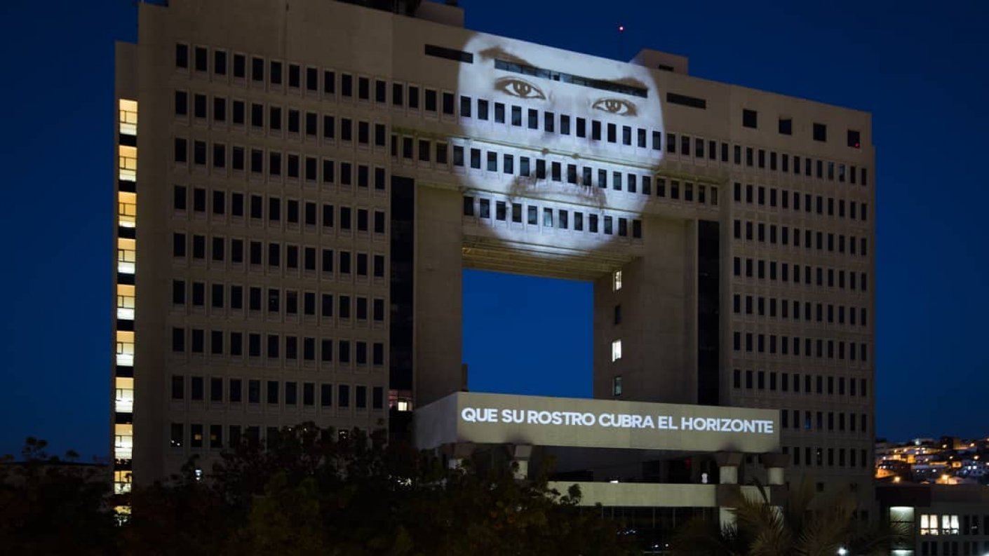 "Que su rostro cubra el horizonte", también se lee en el Congreso, la frase elegida para proyectar sobre el edificio.
