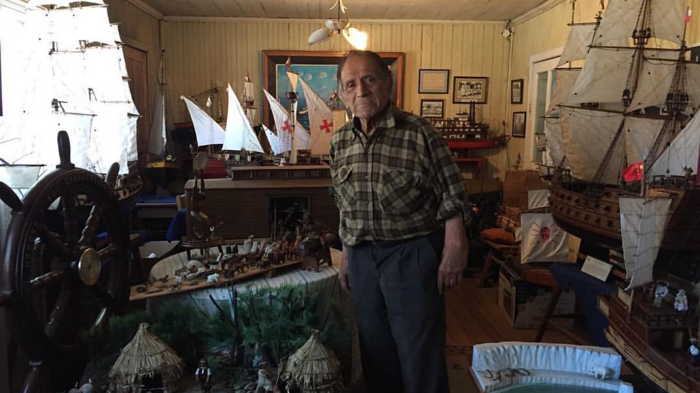Su nombre es Daniel Jara, tiene 80 años y en su hogar alberga cientos de barcos a escala y figuritas que relatan la evolución de las naves en el mar.