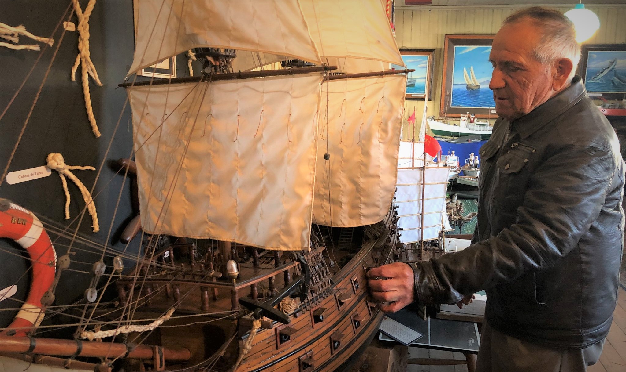 Tiene 80 años, es de la localidad de San Vicente y ha construido con sus propias manos cientos de barcos a escala que relatan la historia naval del mundo. Escribió un libro con la historia del Puerto al que pertenece y dice que su único objetivo es traspasar este conocimiento a las futuras generaciones.